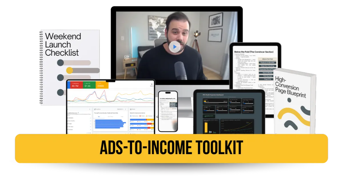 This site is not a part of the Facebook website, Google website, Facebook Inc. or Google Inc. Additionally, This site is NOT endorsed by Facebook or Google in any way. FACEBOOK is a trademark of FACEBOOK, Inc. and GOOGLE is a trademark of GOOGLE, Inc. Fine Print Disclaimer: The information and strategies shared in this training (including the Google Ads Mini Course, Ads-To-Income Toolkit, included tools, templates, calculators, and related content) are provided for general education and informational purposes only. They do not constitute professional advice and have not been prepared with consideration of your individual business goals, financial circumstances, or technical ability. You should evaluate the applicability of this training to your unique situation before implementing any strategy. While results shared are real, they are not guaranteed — because your results will depend on factors outside our control, including your niche, offer, pricing, competition, and implementation. We stand by our training with a 30-day guarantee: if you go through the course, implement the steps, and don’t get results, we’ll refund your purchase — no questions asked. To ensure that you’ve truly explored and applied these learnings, we require 100% of the course to be completed within 30 days of purchase to qualify for a full refund. Please note our system automatically tracks your course completion.